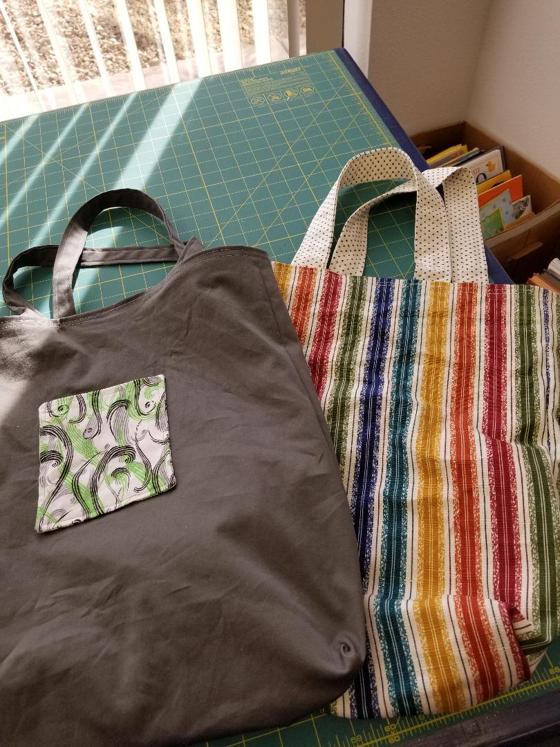 While I was happily sewing away, to some calming, happy music, someone came in and dropped off the bags she had sewn up. Five beautiful bags!